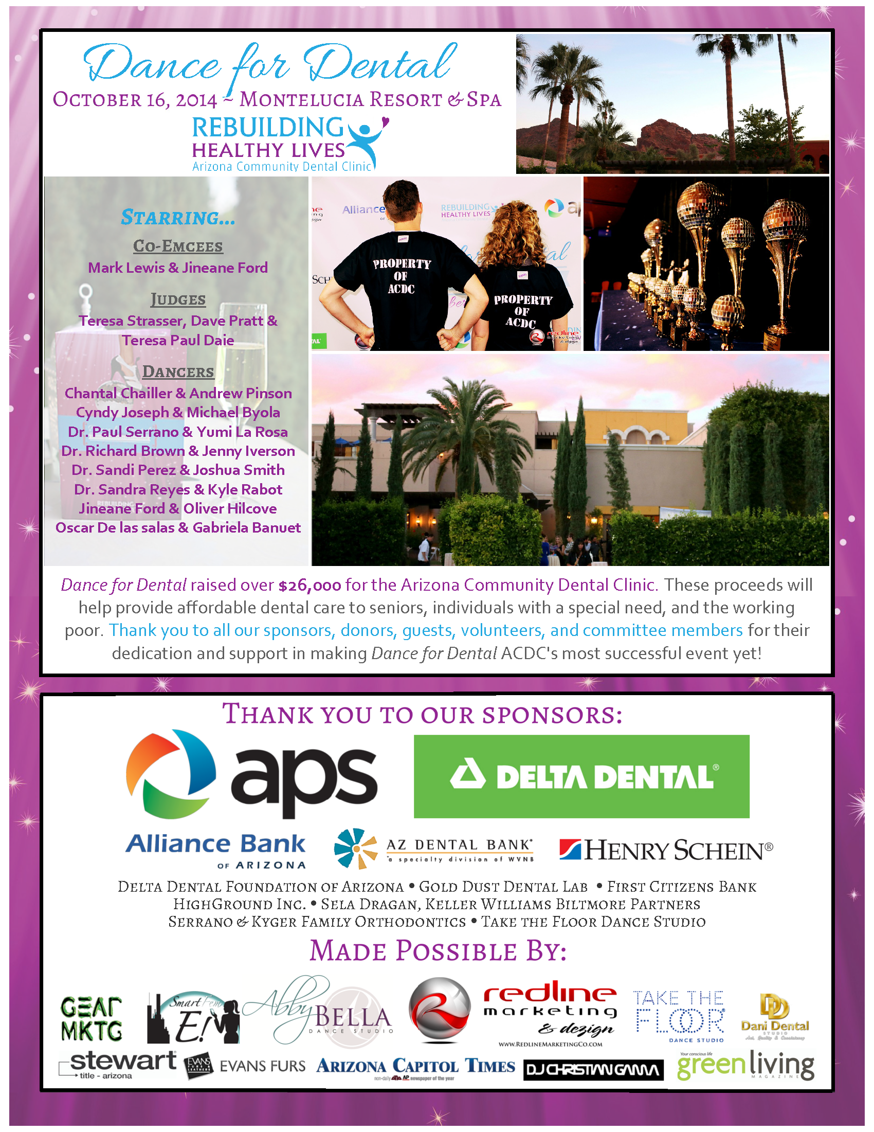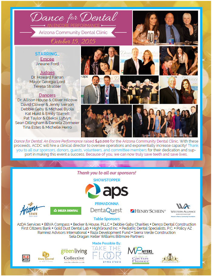 Visit DanceForDental.com for more details on the first-year event, as well as information on the 2nd Annual Dance for Dental-an Encore Performance! Coming Fall 2015!